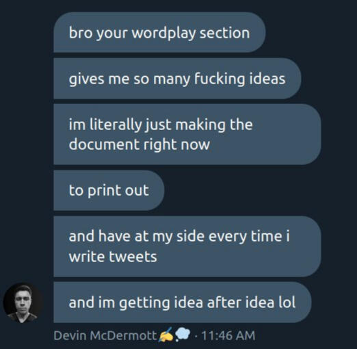 This isn’t about showing you templates and formats.(although there is a fairly practical section on 25+ wordplay tweets you can implement)