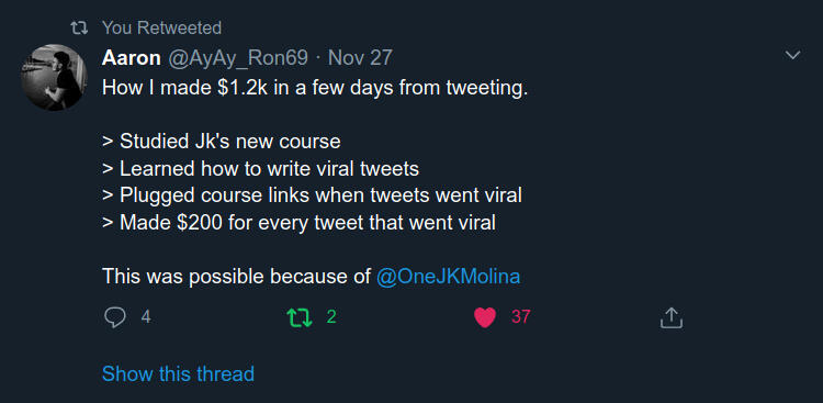 Discover how to write thousand dollar tweets, go viral whenever you want to and cash in on what you've built.
